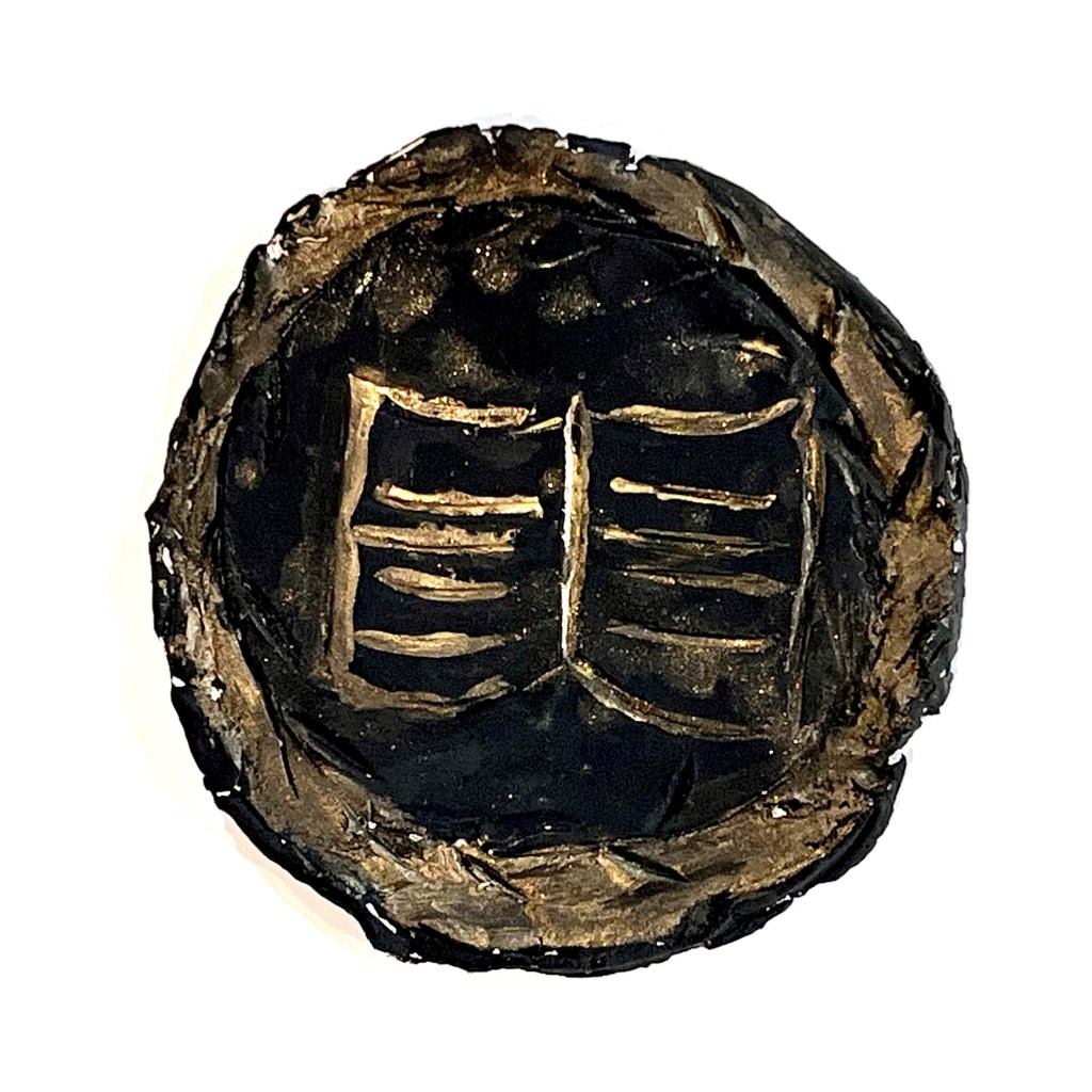 Clay was introduced, for students to engrave their symbol. The clay was then painted black, and the students finished by gently applying gold paint into their engraved marks.