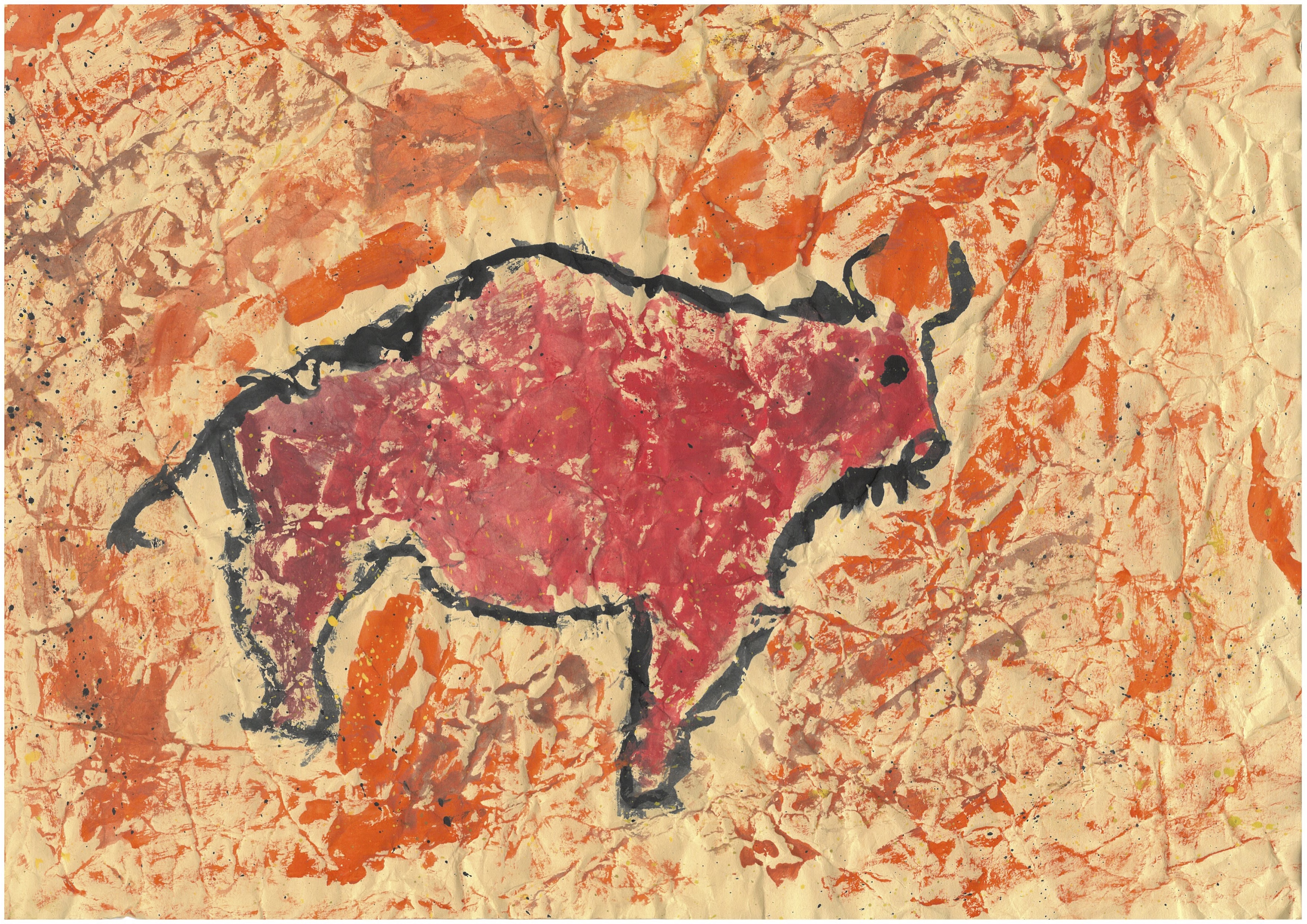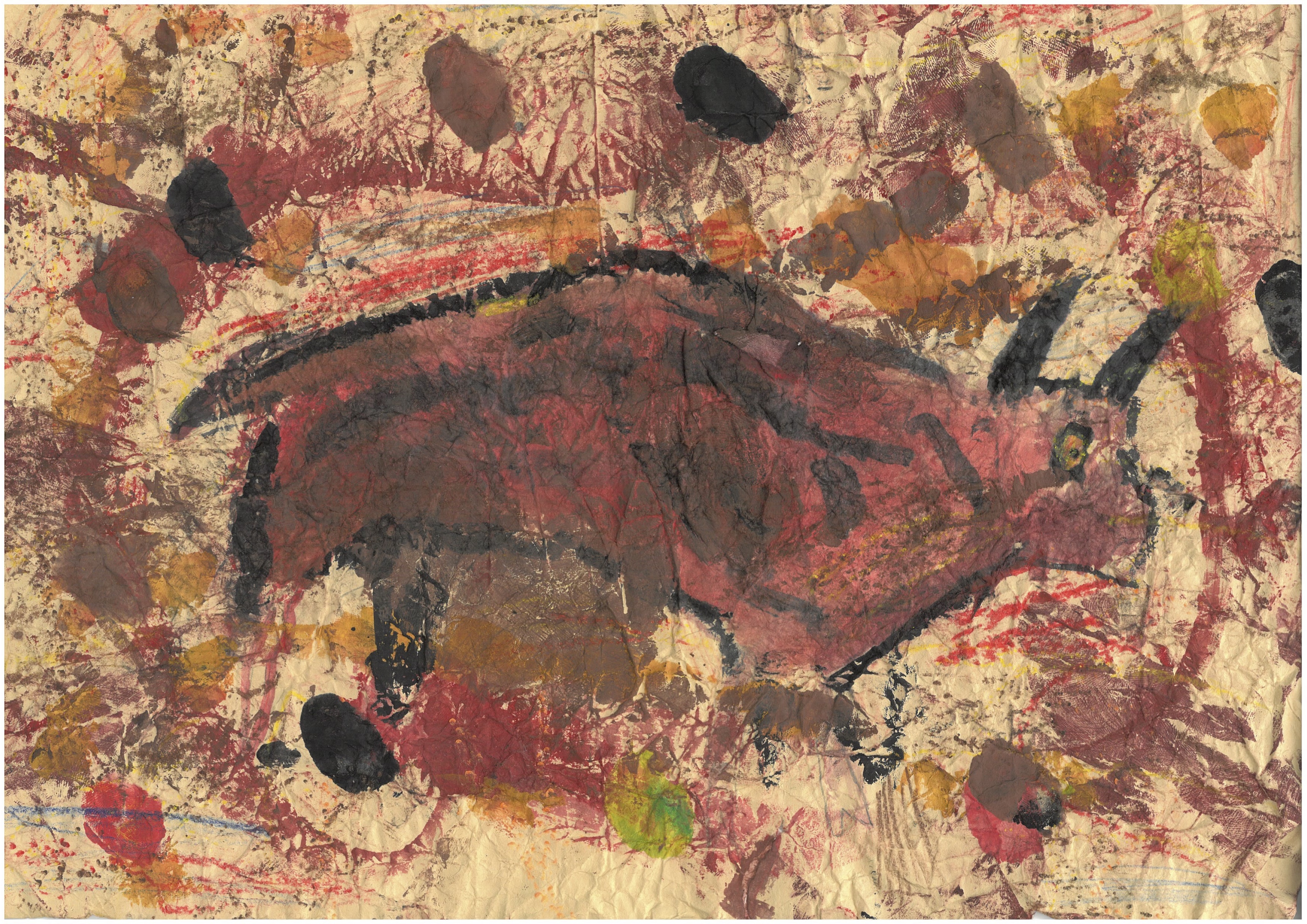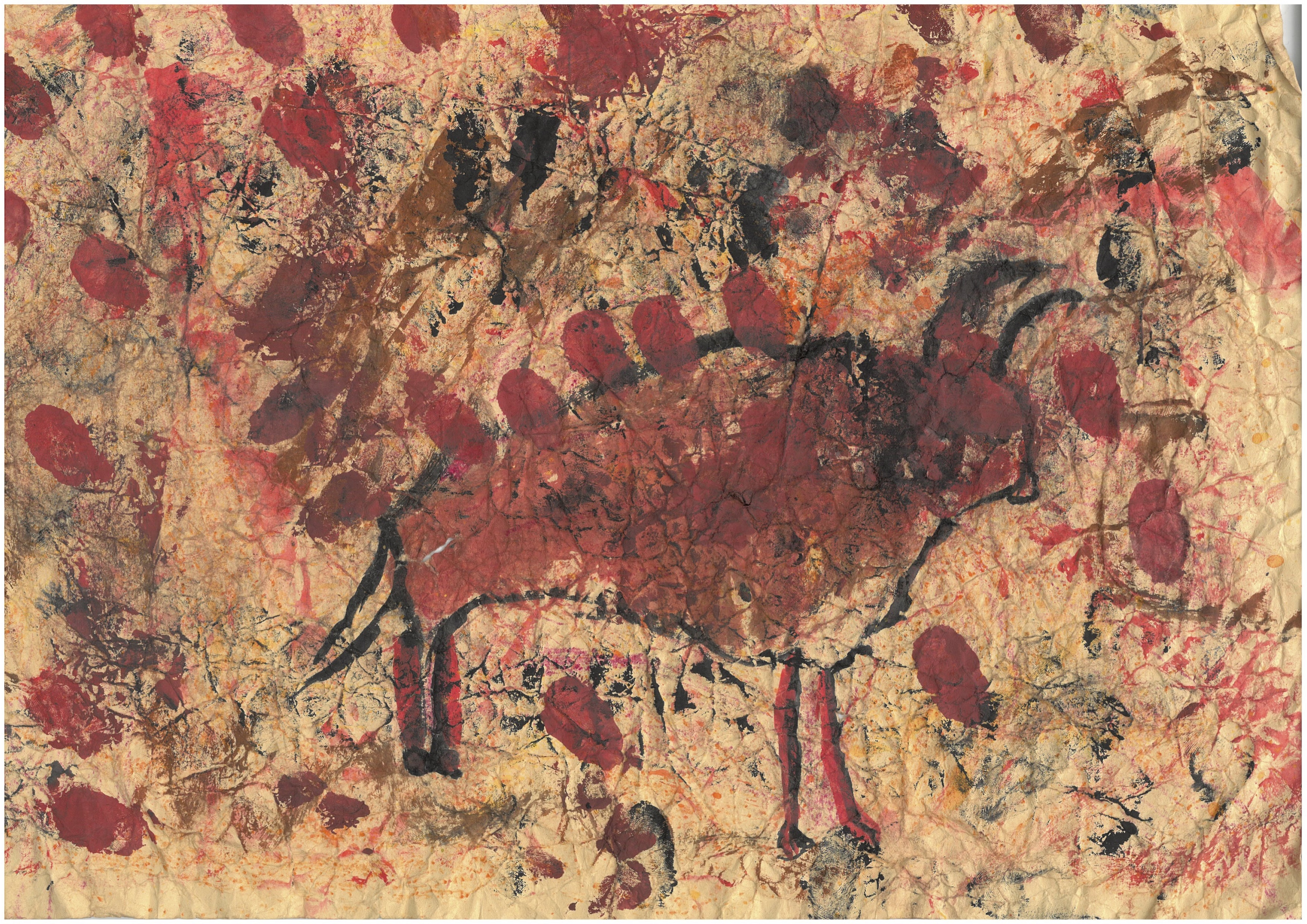 Using absorbent, crumpled paper as their canvas, they faced the challenge of rendering animal forms on the rough, uneven surfaces—just as prehistoric artists might have done on cave walls.