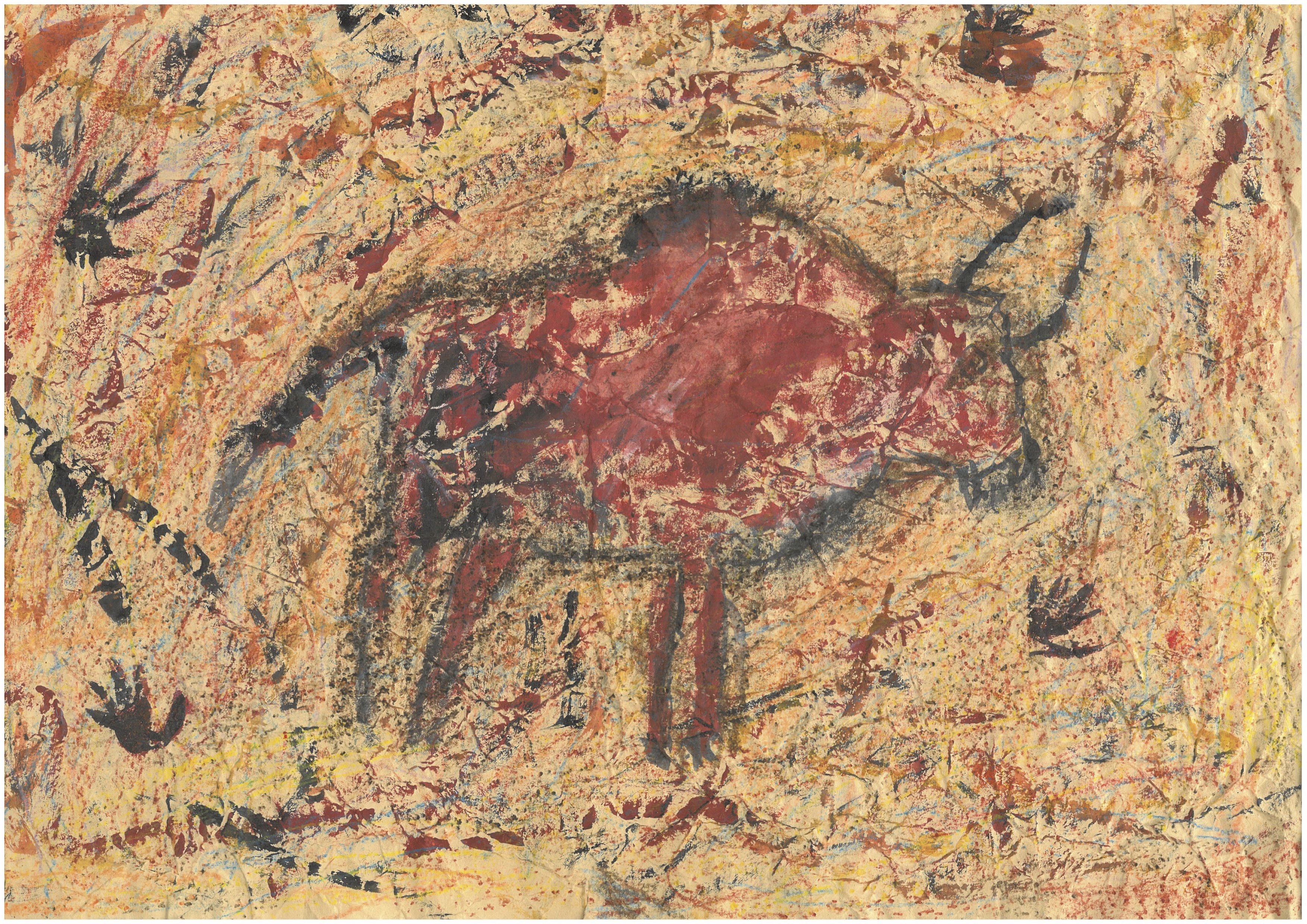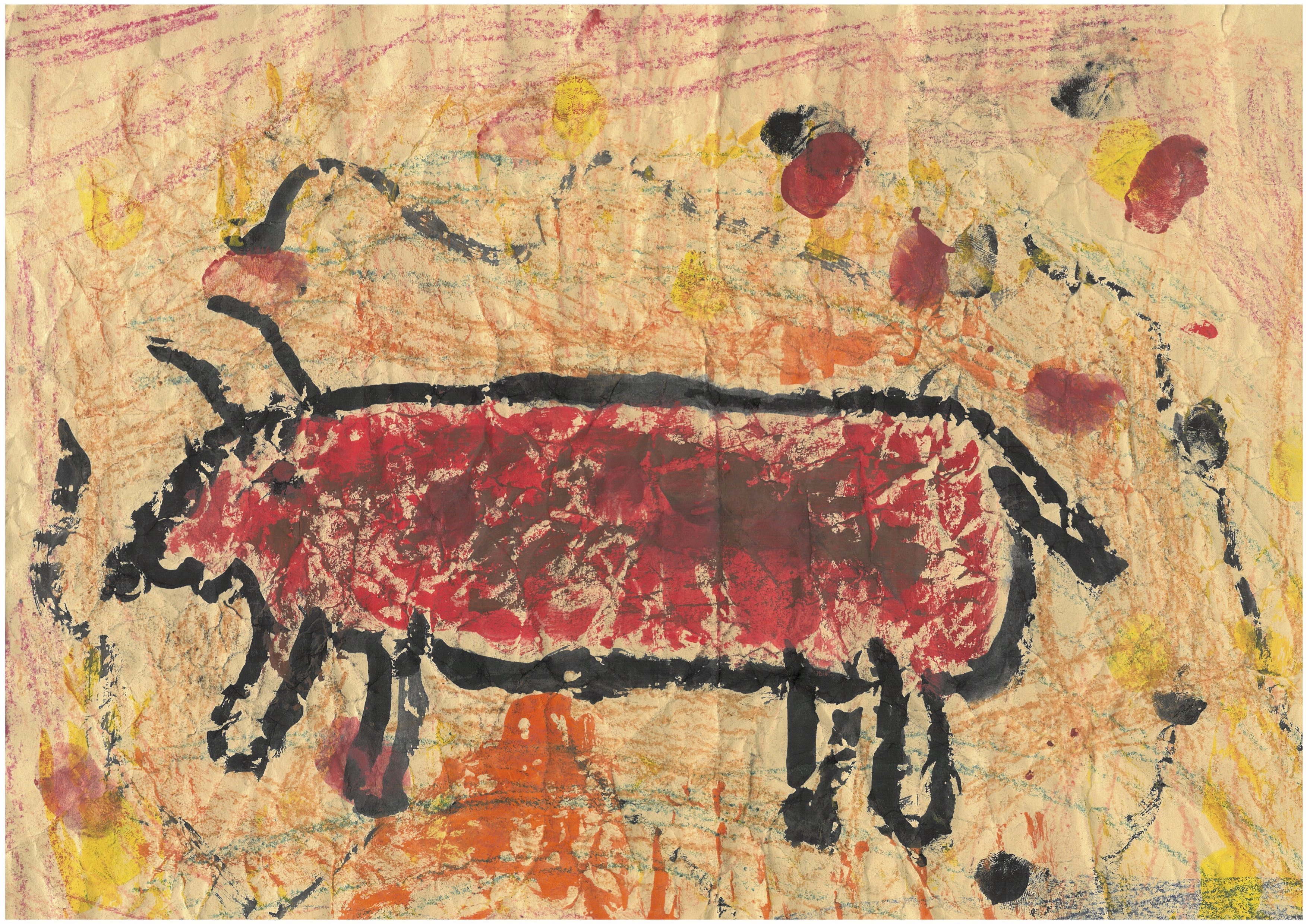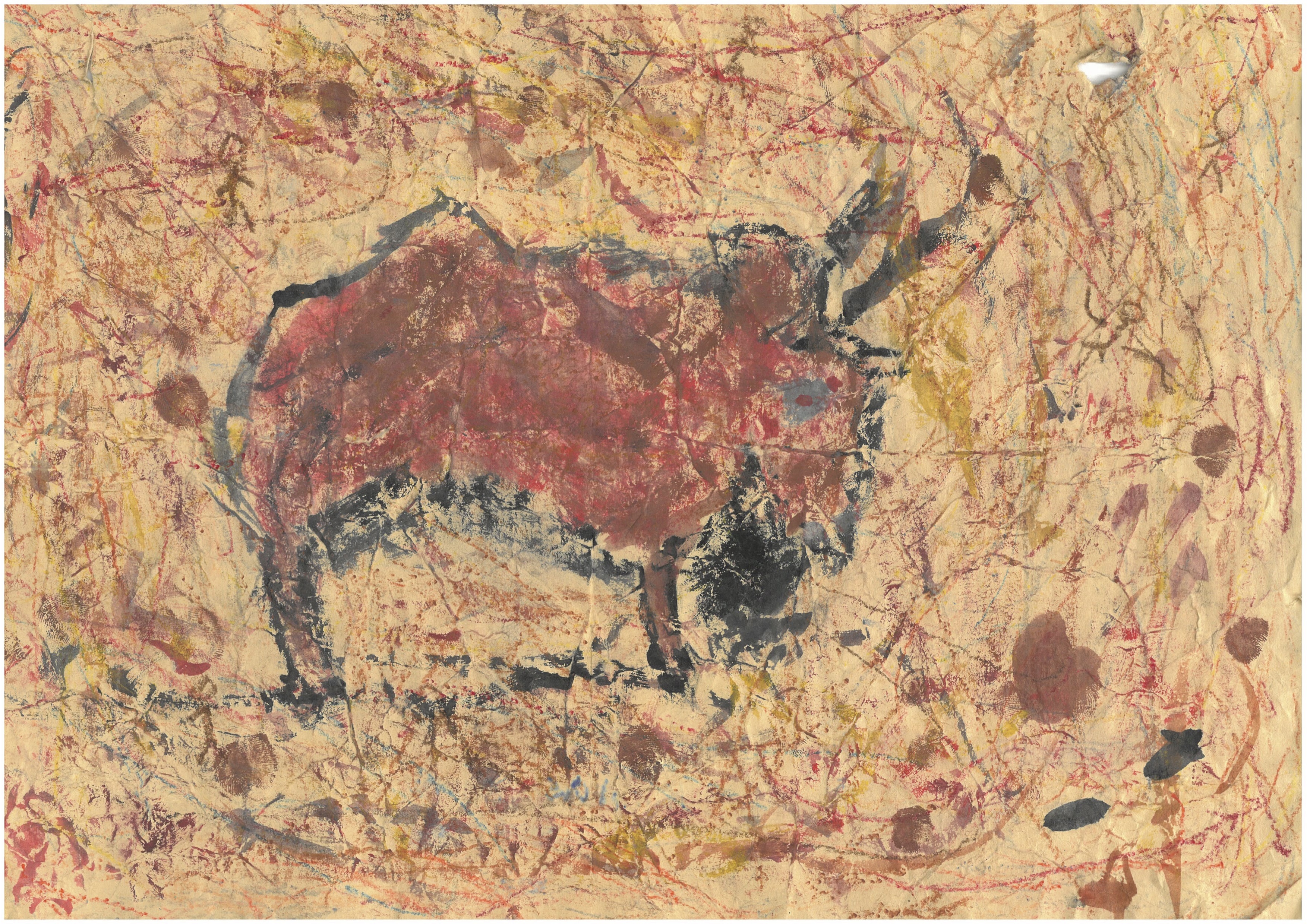 Using absorbent, crumpled paper as their canvas, they faced the challenge of rendering animal forms on the rough, uneven surfaces—just as prehistoric artists might have done on cave walls.