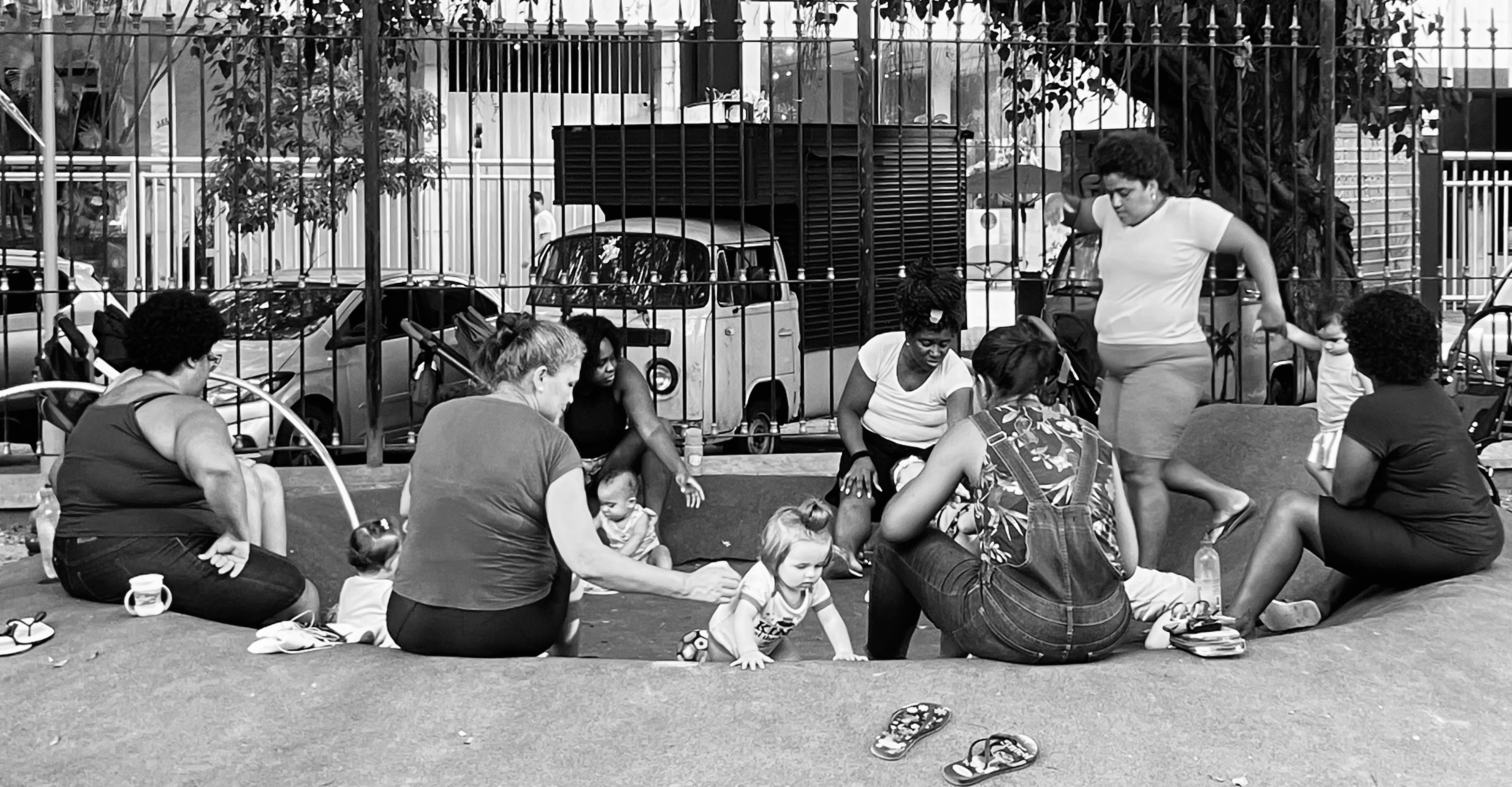 Their photographs reveal what Courbet would have sought; the dignity of labor evident in a street vendor tending his chestnut cart at dusk, the societal margins depicted in a solitary figure resting between weathered columns, the communal experience captured in mothers gathering with their children on worn pavement.
