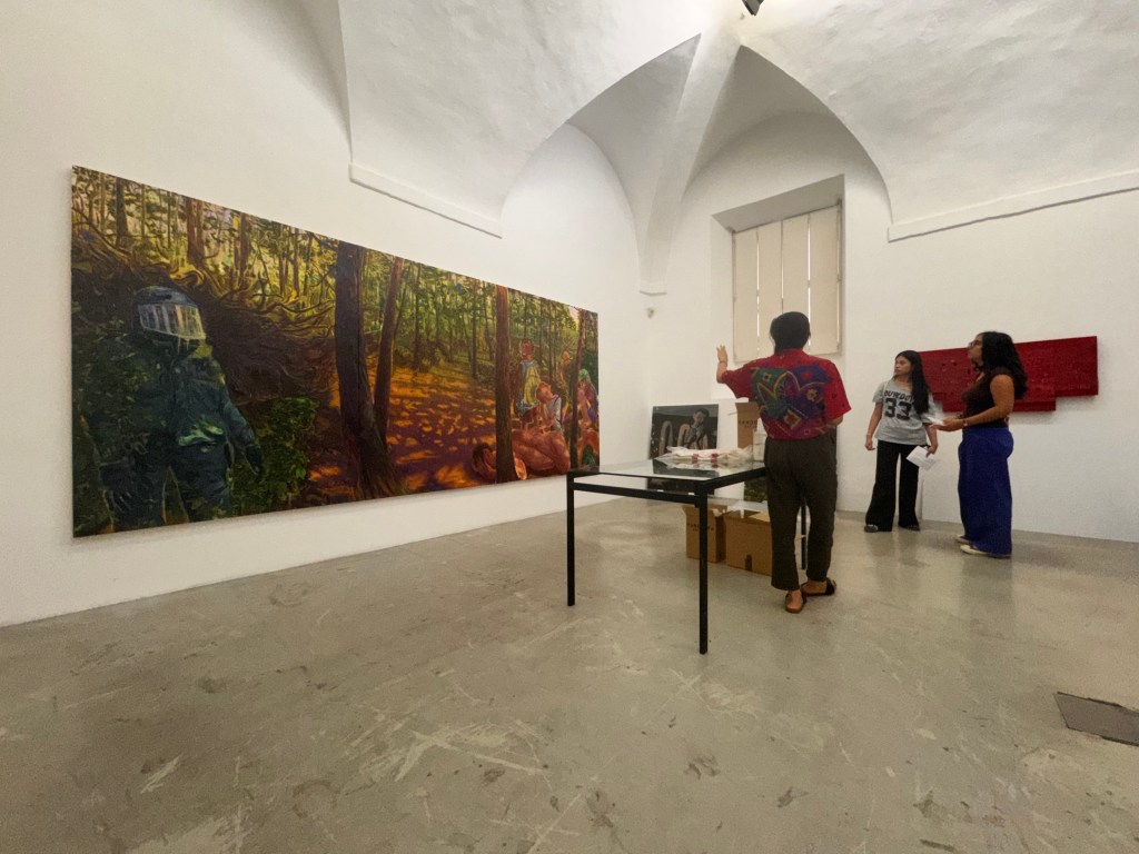 In each space, students examined the syntax of the exhibition: how one work’s colour field prepared the eye for another’s restraint; how a textural shift, from impasto to graphite, from glazed surface to raw linen, altered emotional register. They analysed, at a granular level, how a painting’s structure, its compositional rhythm, and the density of its pigment carried intention and ambiguity in equal measure.