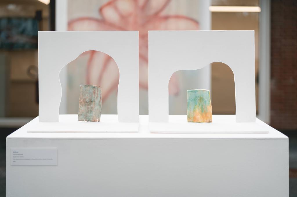 The exhibition is structured to create dialogue between works, particularly through mirrored and confrontational arrangements, reinforcing the idea of a divided self. This reflects a sustained investigation into how material processes can articulate psychological states, with clear development of ideas across the body of work.